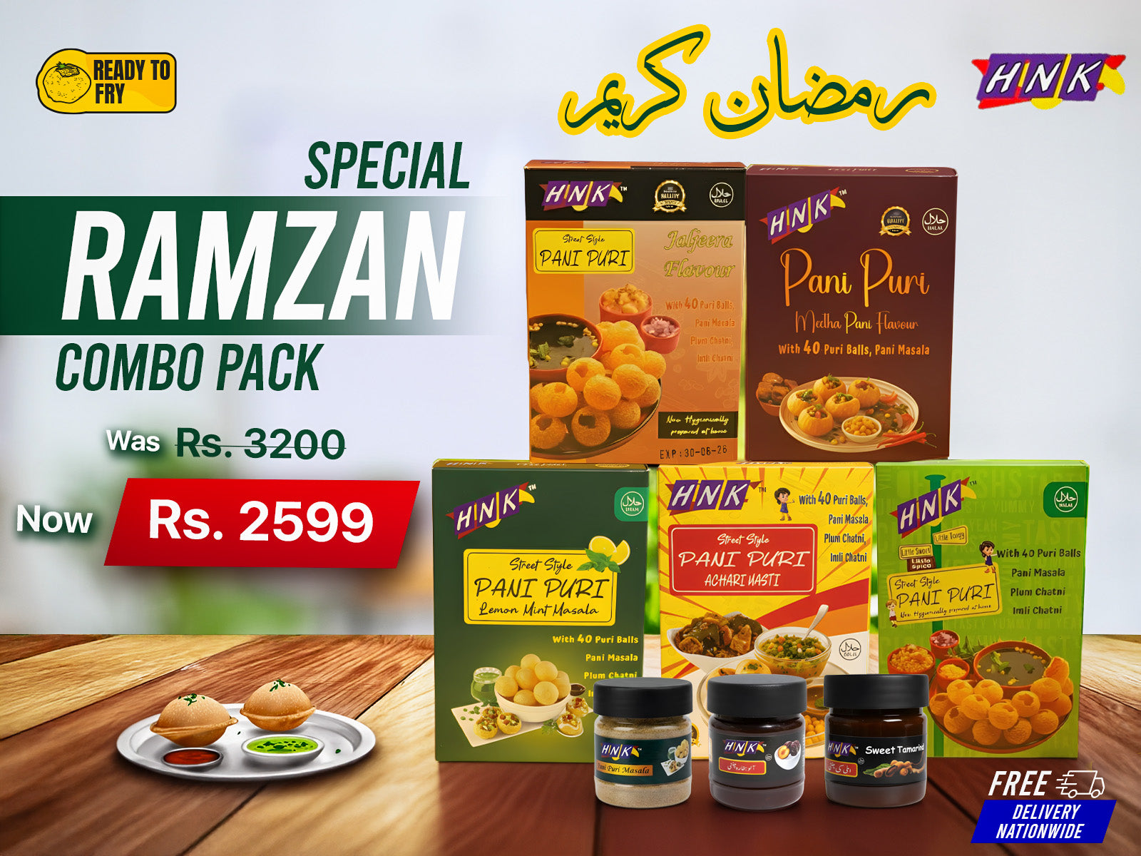 HNK Ramzan Special Pani Puri Combo (5 Flavors + 2xChutneys+Pani Puri Masala) (Tax-Free + Free Delivery)